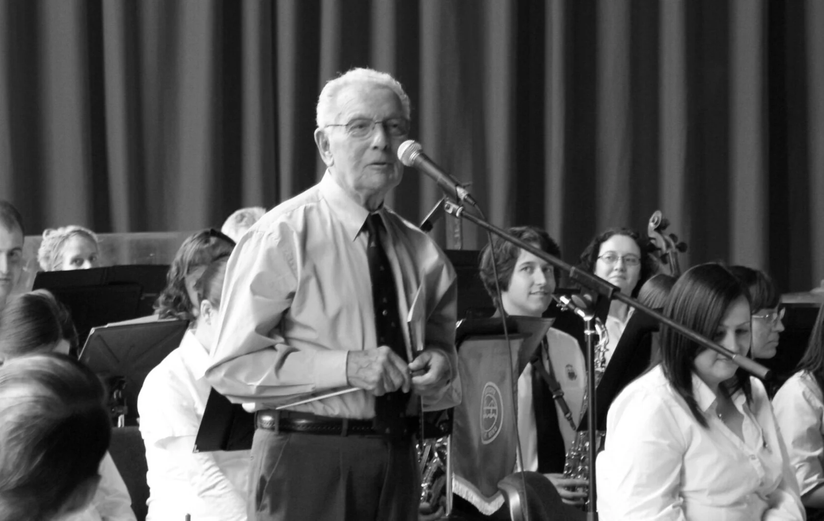After an impressive start to his musical career spanning the army, Her Majesty’s band and the Scots Guards, Derek (Derrick) Humphrey joined the Royal Australian Airforce Band and emigrated to Australian in 1964. While teaching music at schools in Melbourne’s west (Werribee High School, Braybrook College and Westbourne Grammar School), Derek and Roy Hamilton founded the Westgate Youth Band in 1979 eager to provide greater opportunities for young musicians to perform challenging music. Derek served as principal Musical Director from 1979 to 1994, actively recruiting students from schools and even ferrying them from the Wyndham region to rehearsals. Derek instilled self-discipline and loyalty among their young players, and most importantly, a deep passion for music. Upon retiring from directing the band, Derek maintained a strong connection with the group, arranging music for the band and frequently appearing as a guest conductor. Derek’s contributions to music were wide reaching, including establishing the Werribee Choral Society (later known as the Werribee Music Society), and in 2012 he was awarded a Medal of the Order of Australia for service to music. Derek passed away in 2019 at the age of 92. It was a privilege for Westgate Concert Band to have been led by such an inspirational, supportive and generous maestro, who is greatly missed.